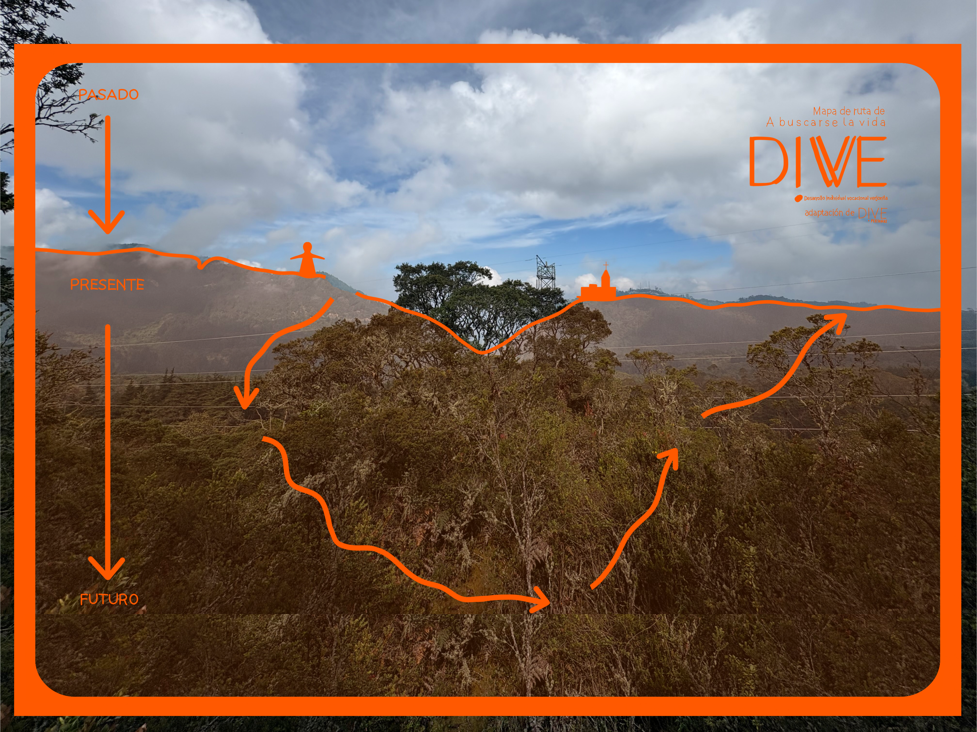 DIVVE propone un recorrido por los Verjones, de espaldas a los cerros de Bogotá, para escudriñar sobre el presente y descubrir las posibilidades del futuro. Este recorrido es posible gracias al mapa de ruta y las herramientas de apoyo.